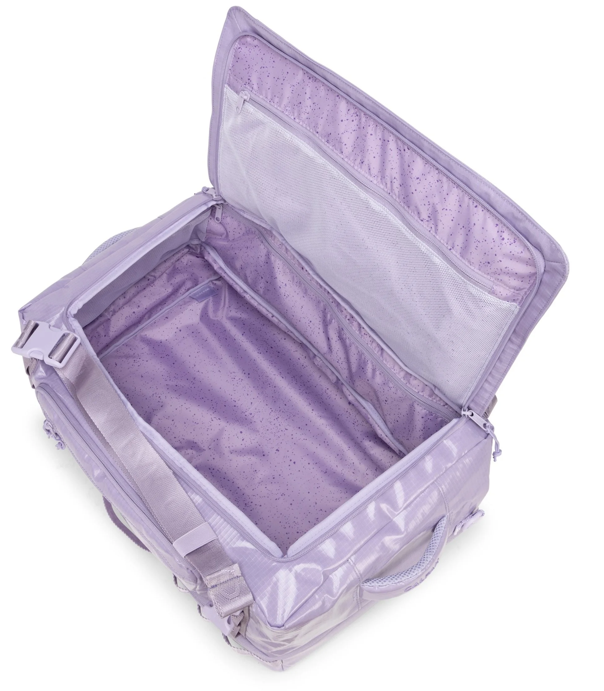 The duffel backpack has a clamshell opening that allows easy access to all items packed inside.