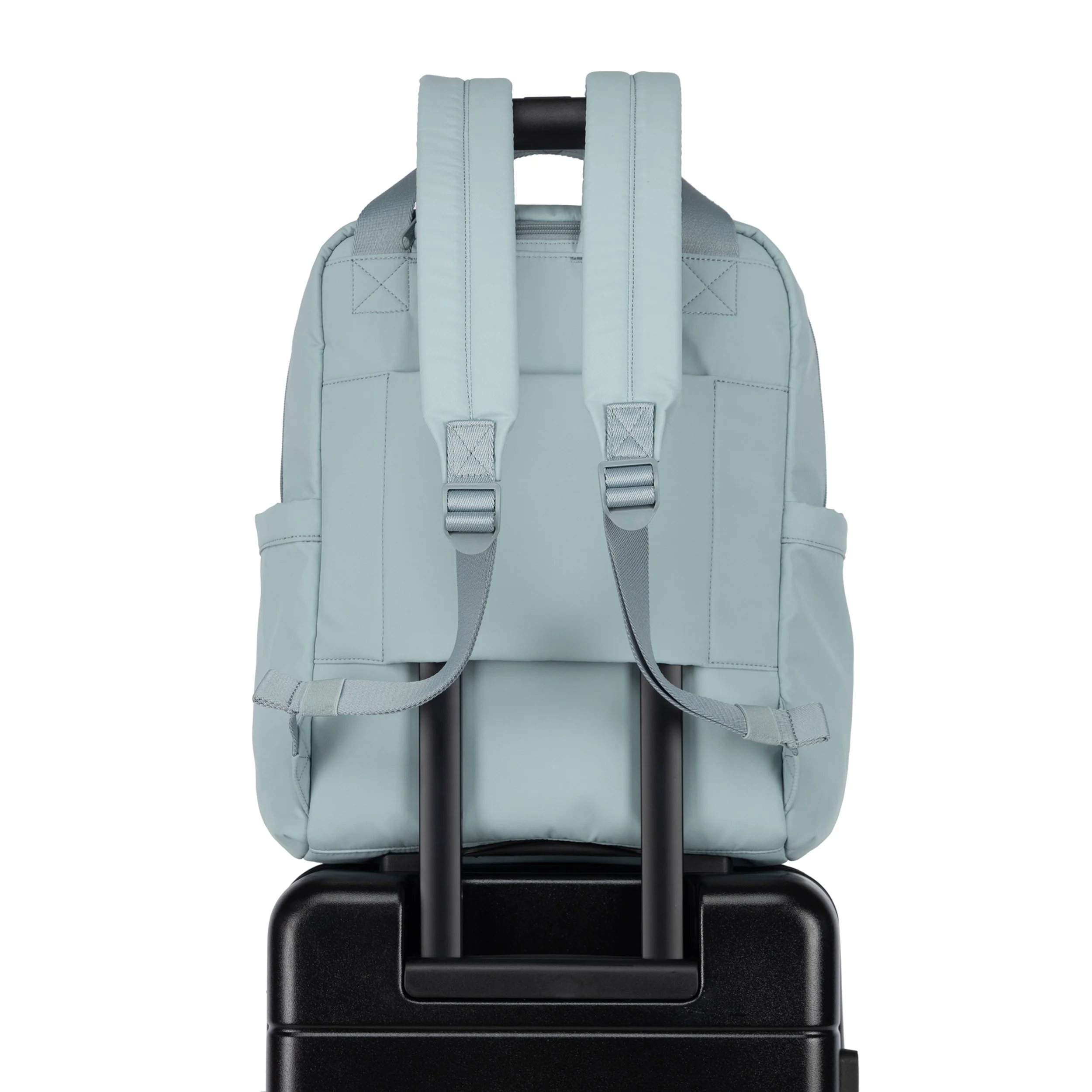 Allows the backpack duffel to slide over trolley bars for hands-free carrying.